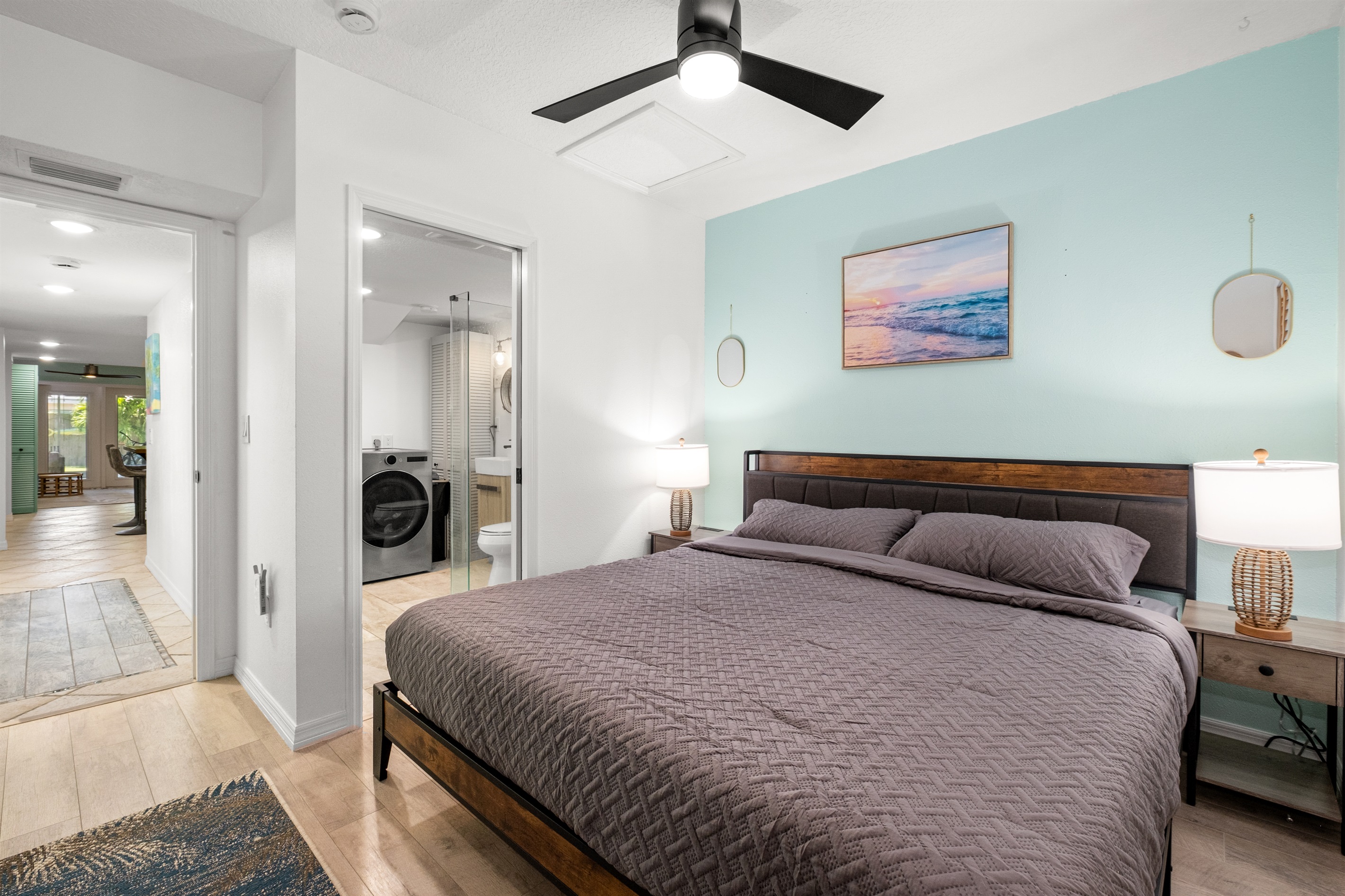 Drop your bags and live like a local. You're just a two-block stroll from the beach and minutes from the iconic Cocoa Beach Pier. Walk or bike to Port Canaveral’s best waterfront restaurants and bars. For an epic day trip, the Kennedy Space Center Visitor Complex is a short, easy drive away.
