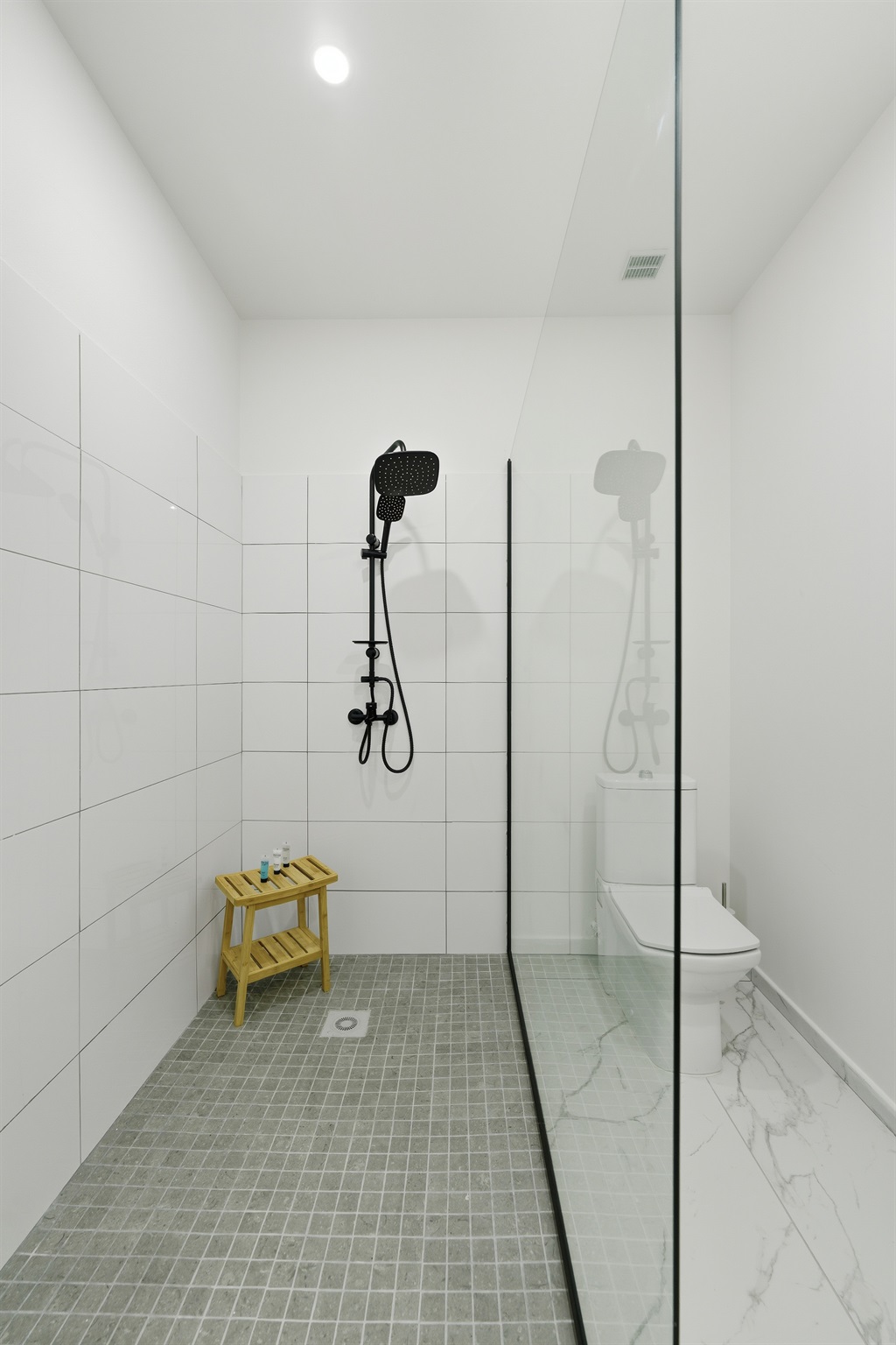 Sliding glass doors expand the space onto your private terrace, creating effortless indoor–outdoor flow.